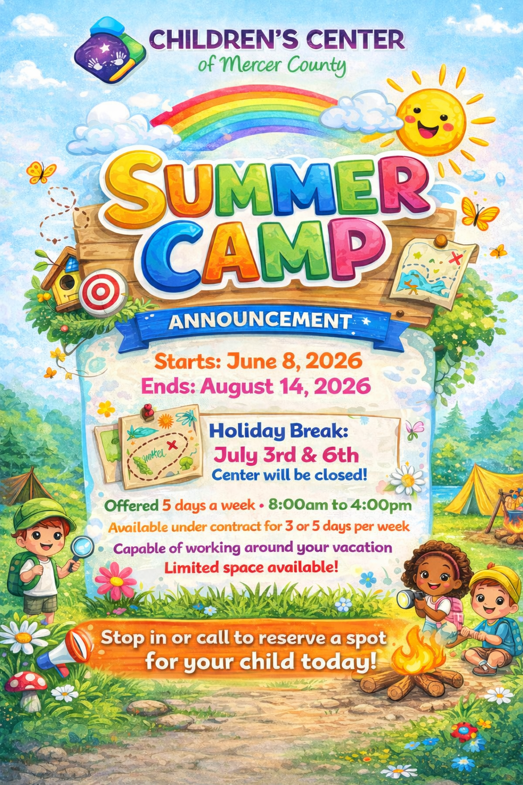 Our summer camp allows for children to participate in a fun learning environment full of exploration that is meant to encourage their natural curiosity and the development of social and behavioral skills. The center will provide an environment that is far more then just a traditional childcare facility.